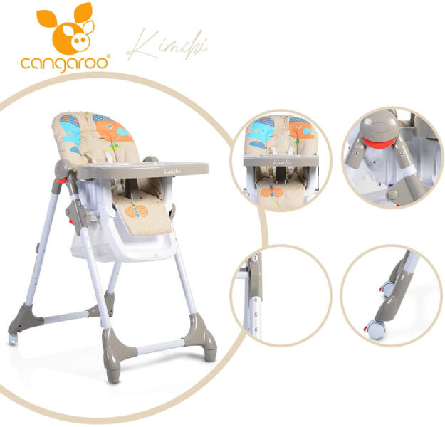A Cangaroo Moni etetőszék modern megoldást kínál minden családnak, ahol a kényelem és a praktikum elengedhetetlen a gyermekek étkezési ideje alatt. Az innovatív dizájn, melyet a felhasználóbarát jellemzők és a biztonságos szerkezet jellemez, egy olyan terméket hoz létre, amely minden szülő és gyermek igényeit kielégíti. Főbb jellemzők: Állítható Magasság: Az etetős