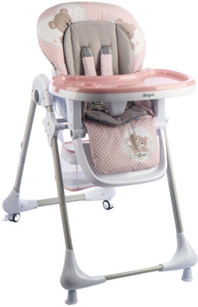 Bergon Cute etetőszék Ajánlott életkor: 6–36 hónap Maximális teherbírás: 15 kg Biztonságos kialakítás: 5-pontos biztonsági öv vállvédő pánttal ellátva Modern és praktikus design Tartós, könnyen tisztítható huzat Belső puha szűkítőbetét Állítható magasság: 7 különböző pozíció Háttámla beállítása: 3 fokozat Lábtámasz beállítása: 3 fokozat Tálca: 3 f