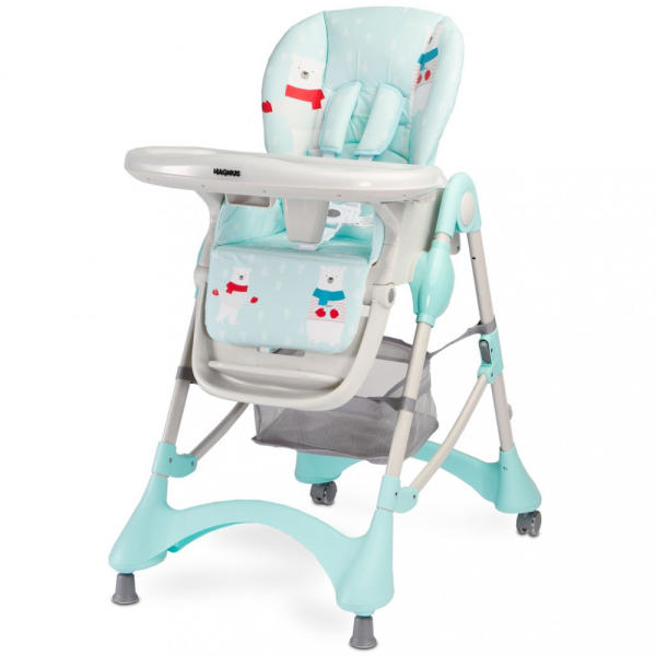 Caretero Magnus New etetőszék, 6 hónapos kortól 3-4 éves korig használatos (15 kg-ig). Nagyszerű újdonság, az etetőszék fekvő pozícióba állítható. A magassága 6 pozícióba állítható. Levehetős, állítható dupla tálcával rendelkezik és sok használati lehetőséget kínál. 5 pontos biztonsági övvel rendelkezik és a levehetős lábközötti biztonsági öv garantálja