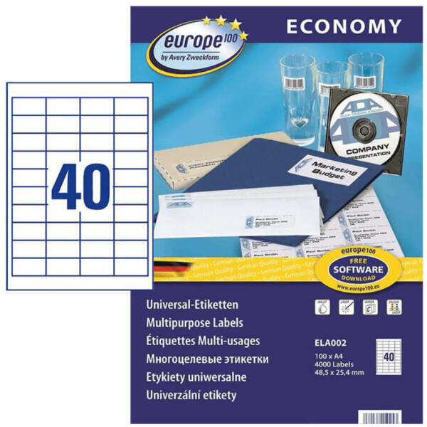 Avery Zweckform A4 íves etikett címke bemutatása (Cikkszám: ELA002) Az Avery Zweckform papír etikett címkéi kiválóan alkalmasak átalános címkézési feladatok ellátására , beltéri körülmények között. A gyártó a matt papír öntapadó alapanyaghoz normál ragasztót társított, mely tökéletes tapadást biztosít a legtöbb címkézési feladat során, széles hőmérsékle
