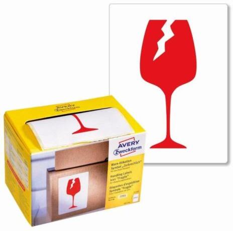 Extra ragadós figyelmeztető címkék tekercsben piros nyomtatással a jó láthatóság érdekében, alkalmasak a szállítmányok egyértelmű jelölésére. A doboz praktikus letekercselőként működik. A szín vörös. A 'TÖRÉKENY' szimbólum.