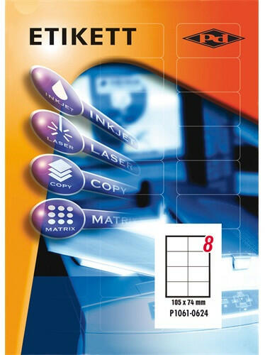 Etikett címke pd 105x74 mm szegély nélküli 100 ív 800 db/doboz * standard minőségű etikettcímkék * tintasugaras és lézernyomtatókhoz, fénymásolókhoz * felhasználás területek: címkézéshez, postázáshoz, iratrendezők rendszerezéséhez