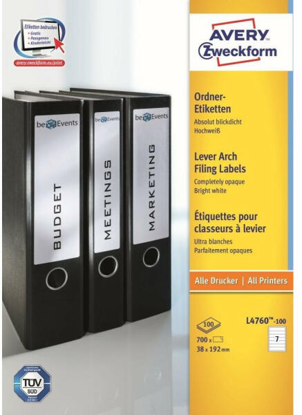 105*42,3 mm-es Avery Zweckform A4 íves etikett címke, fehér színű (100 ív/doboz) A németországi Avery Zweckform több évtizedes tapasztalatának és folyamatos minőségellenőrzésének köszönhetően prémium minőségű etikett címkéket gyárt. Az Avery több száz féle felhasználásra gyárt öntapadó A4-es etikett címkéket, melyek a legkülönlegesebb felhasználási igények