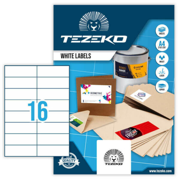 Tezeko A4 íves etikett címke bemutatása (Cikkszám: TZ-A4-0025) A Tezeko papír etikett címkéi kiválóan alkalmasak átalános címkézési feladatok ellátására , beltéri körülmények között. A gyártó a matt papír öntapadó alapanyaghoz normál ragasztót társított, mely tökéletes tapadást biztosít a legtöbb címkézési feladat során, széles hőmérsékleti tartományba