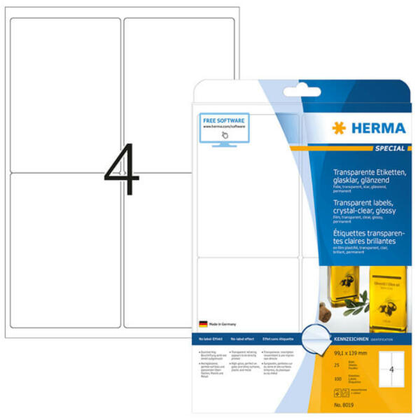 Herma A4 íves etikett címke bemutatása (Cikkszám: HERMA 8019) A Herma időjárásálló műanyag etikett címkéi kiválóan alkalmasak átalános és extra tapadású címkézési feladatok ellátására , beltéri és kültéri körülmények között. A gyártó a műanyag öntapadó alapanyaghoz erős ragasztót társított, mely tökéletes tapadást biztosít a legtöbb címkézési fela