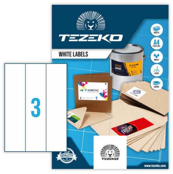 A 70*297 mm Tezeko A4 íves etikett címke főbb jellemzői: A Tezeko professzionális gyártási technológiával és folyamatos minőségellenőrzés mellett prémium minőségű etikett címkét gyárt. Az első ránézésre azonosnak tűnő íves öntapadó etikett címkék között óriási különségek lehetnek, ami a nyomtatók és fénymásolók élettartamát kedvezőtlenül befolyásolj