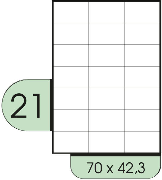 TopStick 70 x 35 mm méretű, fehér színű, matt felületű, univerzális, nyomtatható öntapadós etikett címke A4-es lapon, erős tapadású ragasztóval, hegyes sarkokkal, valamint a nyomtató védelme érdekében négy ragasztómentes lapszéllel. Rendelési azonosító: TopStick 8737. Nyomtatható: fekete-fehér és színes lézernyomtatókban, tintasugaras nyomtatókban, valamint fénym