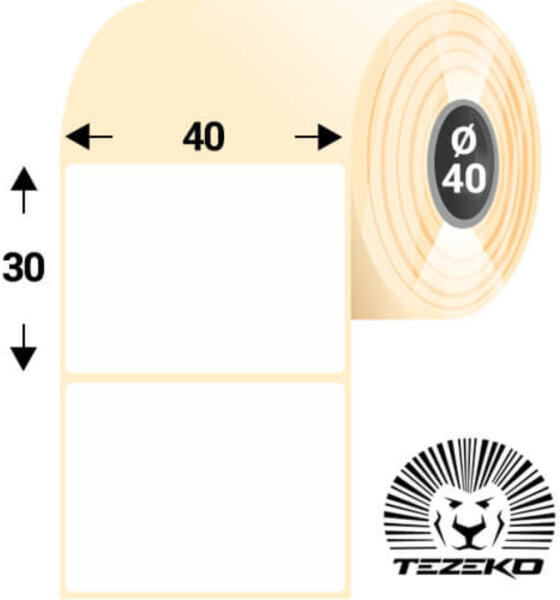 Papír alapanyagú öntapadós etikett címke főbb jellemzői A 40 * 30 mm, papír etikett címke (2000 címke/tekercs) termál-transzfer eljárással nyomtatható alapanyag. A P0400003000-003 cikkszámú papír etikett címke nyomtatásához WAX festékszalag szükséges, így nagyjából 20-25%-al magasabb a nyomtatási költsége, mint a direkt termál alapanyagnak. A nyomtatási folyamat sor