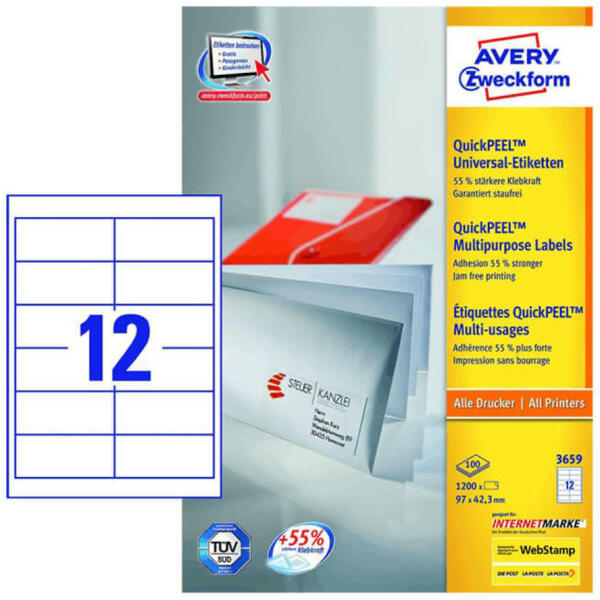 Avery Zweckform A4 íves etikett címke bemutatása (Cikkszám: 3659) Az Avery Zweckform papír etikett címkéi kiválóan alkalmasak átalános címkézési feladatok ellátására , beltéri körülmények között. A gyártó a matt papír öntapadó alapanyaghoz normál ragasztót társított, mely tökéletes tapadást biztosít a legtöbb címkézési feladat során, széles hőmérsékleti