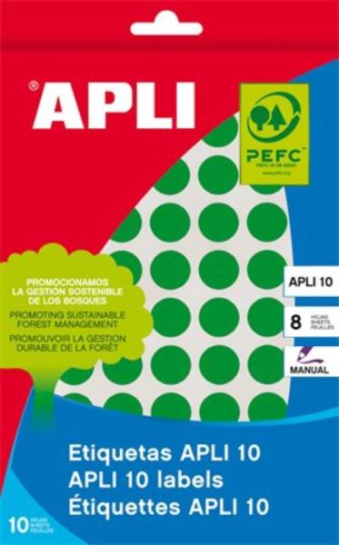 Etikett, 10 mm kör, kézzel írható, színes, APLI, zöld, 1008 etikett/csomag (LCA2733) - kézzel írható - hosszantartó tapadás - tartós színek - megkapta a PEFC tanúsítványát, megfelel a nemzetközi fenntartható erdőgazdálkodás köveleményeinek - megkapta az FSC (Felelős Erdőgazdálkodás Tanácsa) tanúsítványát, megfelel a környezettudatos gyártás követelményeinek -