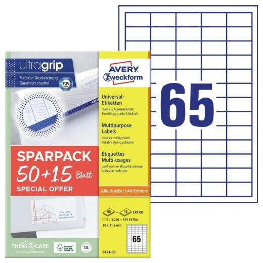 Etikett 38x21,2mm 65 lap 65 címke/lap univerzális Avery, fehér Címke mérete: 38 x 21,2 mm Doboz tartalma: 4225 címke - 65 lap/doboz (65 címke/ lap) Fehér papírcímkék 50+15 lapos takarékos csomagban. Pontos nyomtatásadagolás és garantált elakadásmentesség az innovatív ultragrip technológiának köszönhetően. FSC tanúsítvánnyal rendelkező, felelősségteljesen kezelt erdők