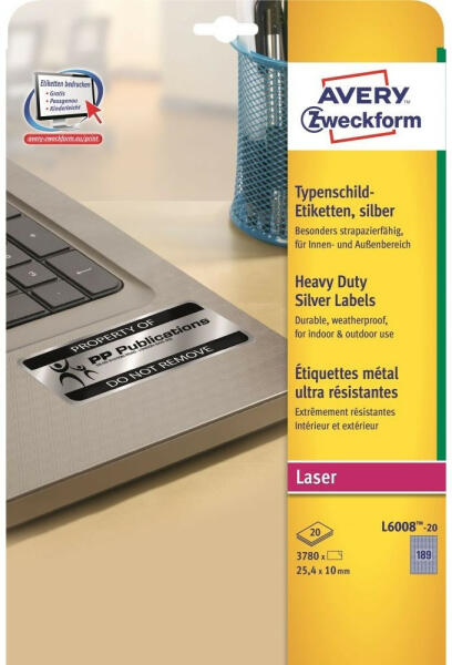 Etikett, 210x297 mm, poliészter, időjárásálló, APLI, ezüst, 100 etikett/csomag (LCA12974) matt, ezüst színben lézernyomtatókban és fénymásolókban használható ellenáll az időjárás viszontagságainak, víznek, szennyeződéseknek, párának -20°C és +100°C között használható kimondottan ipari felhasználásra tervezve, kiválóan alkalmas vegyi laborokban, építkezéseke