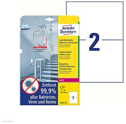 Fóliacímke 99,9% antimikrobiális hatással: eltávolítja az összes vírus, baktérium és kórokozó 99,9%-át. Állandó és tartós önsterilizáló hatás, egészségre és környezetre nem ártalmas. Használható ajtókon, íróasztalokon, könyveken, villanykapcsolókon és még számos más felületen. A címke részben nyomtatható és méretre vágható, a hatékonyság csökkenése