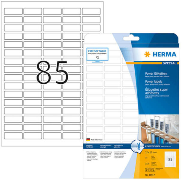 A Herma extra erős tapadást igénylő felhasználásra szánt A4-es íves címkéje! Matt papír alapanyagú, erős ragasztóval, mely széles hőmérsékleti tartományban használható. A papír öntapadó címke kültéri hatásoknak nem, vagy csak korlátozottan áll ellen. A Herma íves öntapadó etikett címkéivel kiváló nyomtatási eredmény érhető el, bármilyen A4-es formátumú n