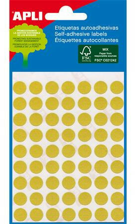 Etikett, 8 mm kör, kézzel írható, színes, APLI, sárga, 288 etikett/csomag - figyelemfelkeltő hatású, ideális árakciók, figyelmeztető feliratok készítésére, vagy színkódos jelölésre - megkapta a PEFC tanúsítványát, megfelel a nemzetközi fenntartható erdőgazdálkodás követelményeinek - megkapta az FSC (Felelős Erdőgazdálkodás Tanácsa) tanúsítványát, megfelel a
