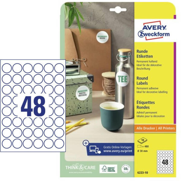 Etikett címke 30x30 mm, Avery Zweckform, Fehér színű, (10 ív/doboz) A németországi Avery Zweckform több évtizedes tapasztalatának és folyamatos minőségellenőrzésének köszönhetően prémium minőségű etikett címkéket gyárt. Az Avery több száz féle felhasználásra gyárt öntapadó A4-es etikett címkéket, melyek a legkülönlegesebb felhasználási igényeket is kielég