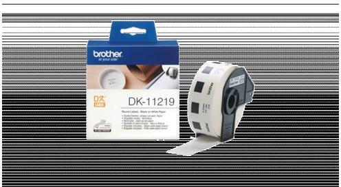 **DK-11219 kör alakú elővágott öntapadós etikett címke tekercsben. *** Alapanyag: papír-Szín: fehér* Felirat: fekete* Címke mérete: 12 mm* 1200 címke/tekercs