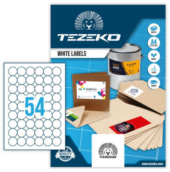 A 30 mm Tezeko A4 íves etikett címke főbb jellemzői: A Tezeko professzionális gyártási technológiával és folyamatos minőségellenőrzés mellett prémium minőségű etikett címkét gyárt. Az első ránézésre azonosnak tűnő íves öntapadó etikett címkék között óriási különségek lehetnek, ami a nyomtatók és fénymásolók élettartamát kedvezőtlenül befolyásolják