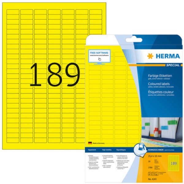 A Herma öntapadós címke speciális visszaszedhető ragasztójának köszönhetően felragasztás után könnyedén visszaszedhető anélkül, hogy a felületen nyomot hagyna. Sokféle felhasználásra alkalmas, általános matt papír alapanyagú öntapadó etikett címke, visszaszedhető ragasztóval A4-es méretű lapokon. Kültéri hatásoknak nem, vagy csak korlátozottan áll ellen. Elsőd