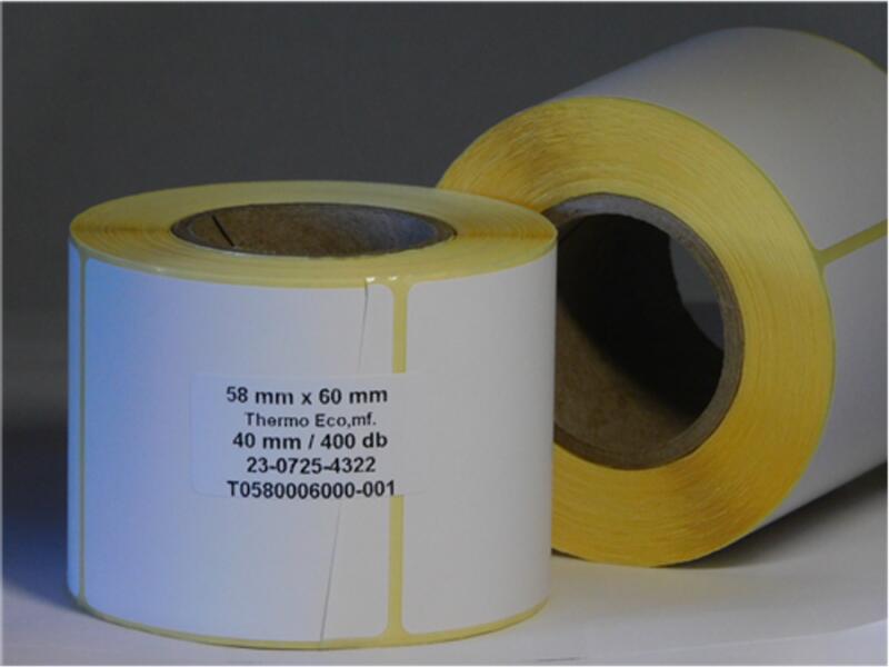 Termó címke 58 x 60 mmTulajdonságai: 400 db/tekercs 1 pályás 40 mm mag átmérő külső tekercselés csak beltéri használatra hőérzékeny külső átmérő 75 m asztali és közepes nyomtatóba nyomtatásához festékszalag nem szükséges.