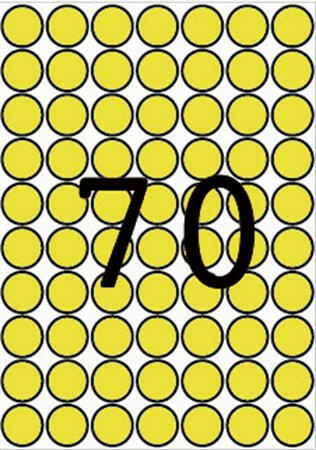 Etikett, 19 mm kör, színes, A5 hordozón, APLI, sárga, 560 etikett/csomag - lézernyomtatóban, fénymásológépben és tintasugaras nyomtatóban használható, valamint kézzel írható - A5 méret - gazdaságos megoldás kis mennyiségű felhasználás esetén - 8 lap/csomag - megkapta a PEFC tanúsítványát, megfelel a nemzetközi fenntartható erdőgazdálkodás követelményeinek - megk