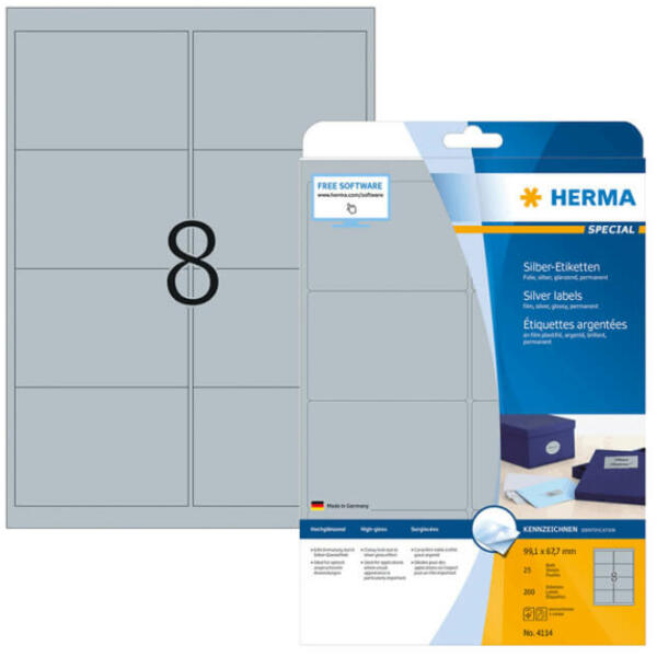 A Herma normál tapadást igénylő, általános felhasználásra szánt műanyag (PE) A4-es íves címkéje! Vegyszer-, olaj-, nedvesség, szennyeződés, UV- és hőálló (-20 C° - +80 C°), műanyag öntapadó etikett címke. Kültéri (időjárásálló) és beltéri használatra kifejlesztett, széles hőmérsékleti tartományban használható íves etikett címke. A Herma íves öntapadó