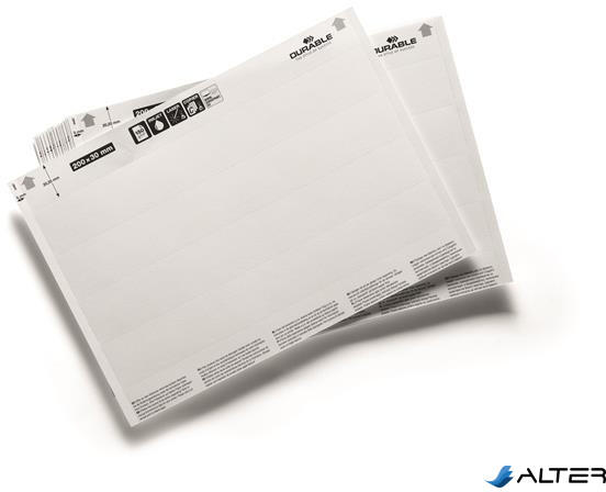 Mikroperforált, betétlap A5 méretben. -felhasználási terület: fénymásolókhoz, lézer- és tintasugaras nyomtatókhoz, szakszerű címkézéshez raktárban és gyártási területeken -karton -DURABLE C-profil mágnesekhez, valamint SCANFIX és LABELFIX termékekhez -betétlap mérete: 200 x 30 mm -80 db/csomag Itt megtekinthető és letölthető a termékadatlap.