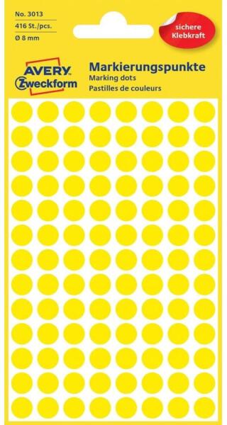 Címke mérete: 8 mmCsomag tartalma: 416 jelölőpont/csomagAz AVERY ZWECKFORM jelölőpontok tökéletesek jelölésre, rendszerezésre, tervezésre, iratrendezésre. Katalóguskód: 25363
