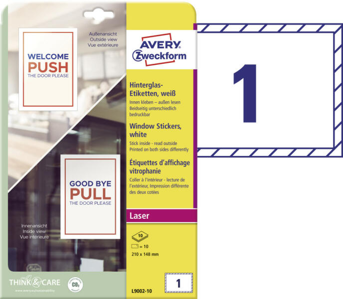 Címke mérete: 210 x 148 mm Avery Zweckform 210 x 148 mm méretű, fehér színű, matt felületű, mindkét oldalán nyomtatható, időjárásálló öntapadós kirakat matrica, A5-ös lapon, visszaszedhető ragasztóval, hegyes sarkokkal. Garantált elakadásmentes nyomtatás minden szabványos lézernyomtatóval. A matrica elülső oldala papír alapú, körben öntapadós szegéllyel rendelke