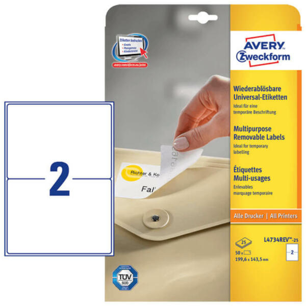 199,6*143,5 mm-es Avery Zweckform A4 íves etikett címke, fehér színű (25 ív/doboz) A németországi Avery Zweckform több évtizedes tapasztalatának és folyamatos minőségellenőrzésének köszönhetően prémium minőségű etikett címkéket gyárt. Az Avery több száz féle felhasználásra gyárt öntapadó A4-es etikett címkéket, melyek a legkülönlegesebb felhasználási igény