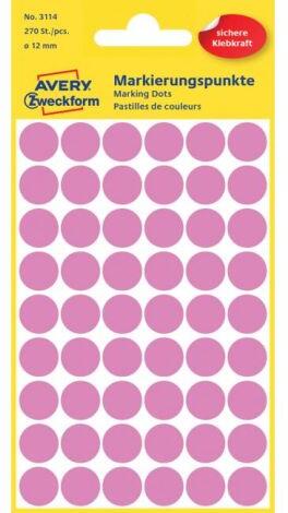 Kör alakú címkék a kézi leíráshoz. Átmérője 12 mm, 270 címkét tartalmazó csomagban. Rózsaszín szín.