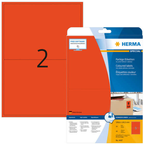 Herma visszaszedhető A4 íves etikett címke bemutatása (Cikkszám: HERMA 4497) A Herma papír etikett címkéi kiválóan alkalmasak visszaszedhető, nyom nélkül eltávolítható címkézési feladatok ellátására , beltéri körülmények között. A gyártó a papír öntapadó alapanyaghoz visszaszedhető ragasztót társított, mely tökéletes tapadást biztosít a legtöbb címkézés