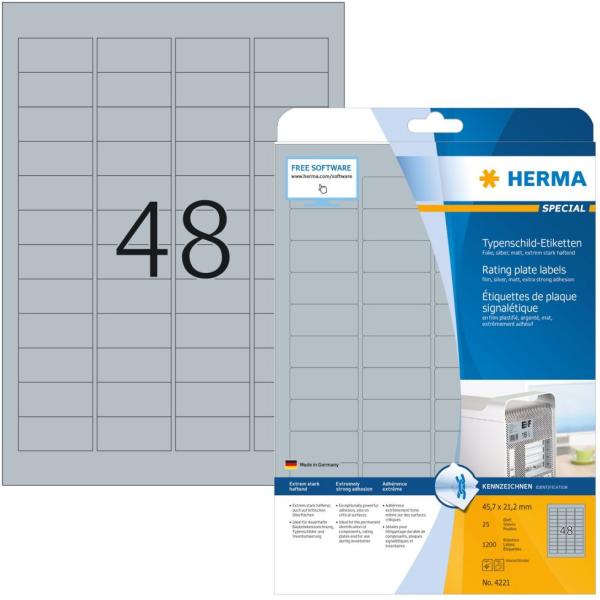Címke mérete: 45,7 x 21,2 mm Herma 45,7 x 21,2 mm méretű, ezüst színű, matt felületű, időjárásálló, nyomtatható öntapadós ipari etikett címke, A4-es lapon, extra erős, tartós ragasztóval, kerekített sarkokkal, valamint a ragasztómentes lapszéleknek és a teljesen sík címkeíveknek köszönhetően problémamentes, elakadásmentes nyomtatással. Rendelési azonosító: Herm