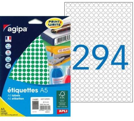 Fehér és színes kerek címkék A5-ös formátumban. Átmérő: 8 mm Szín: zöld Kiszerelés: 10 lap
