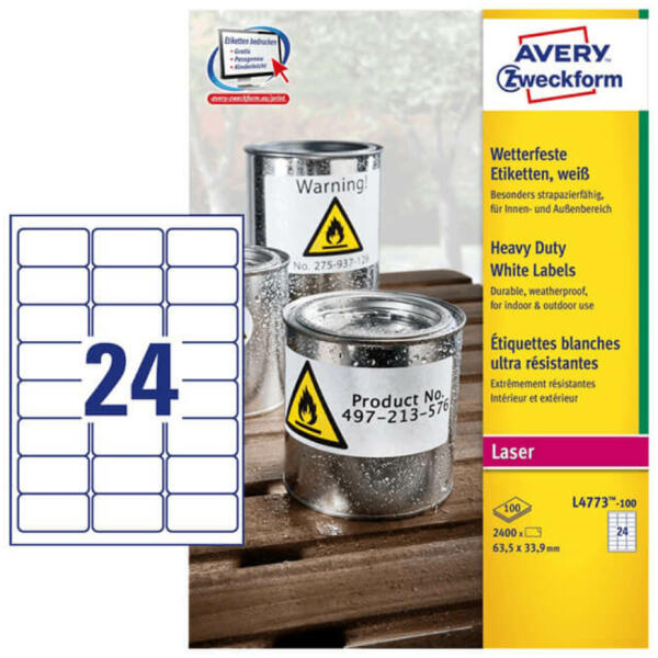 Avery Zweckform A4 íves etikett címke bemutatása (Cikkszám: L4773-100) Az Avery Zweckform időjárásálló műanyag etikett címkéi kiválóan alkalmasak átalános és extra tapadású címkézési feladatok ellátására , beltéri és kültéri körülmények között. A gyártó a műanyag öntapadó alapanyaghoz erős ragasztót társított, mely tökéletes tapadást biztosít a legtö