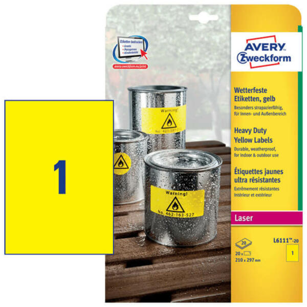 Avery Zweckform A4 íves etikett címke bemutatása (Cikkszám: L6111-20) Az Avery Zweckform időjárásálló műanyag etikett címkéi kiválóan alkalmasak átalános és extra tapadású címkézési feladatok ellátására , beltéri és kültéri körülmények között. A gyártó a műanyag öntapadó alapanyaghoz erős ragasztót társított, mely tökéletes tapadást biztosít a legtöb