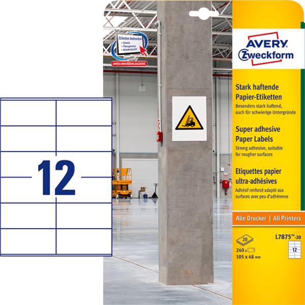 Az Avery Zweckform extra erős tapadást igénylő felhasználásra szánt A4-es íves címkéje! Matt papír alapanyagú, erős ragasztóval, mely széles hőmérsékleti tartományban használható. A papír öntapadó címke kültéri hatásoknak nem, vagy csak korlátozottan áll ellen. Az Avery Zweckform íves öntapadó etikett címkéivel kiváló nyomtatási eredmény érhető el, bármily