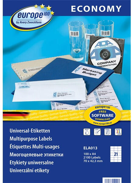 Avery Europe100 ELA013 70x42,3mm 2100db-os etikett