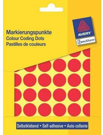 A 3374 cikkszámú, 18 mm-es átmérőjű piros, öntapadós jelölőpontok az AVERY ZWECKFORM-tól tökéletesek jelölésre, rendszerezésre, tervezésre, iratrendezésre. 1056 jelölőpont van egy csomagban.