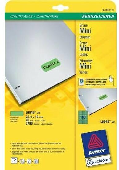 Az Avery Zweckform L6049-20 cikkszámú, zöld színű címkéi 25,4x10 mm méretben tökéletesek például arra, hogy színkódok segítségével rendszerezzünk dokumentumokat, termékeket. 3780 címke/20 ív/csomag. Biztos lehet az elakadásmentes nyomtatásban, hiszen ragasztómaradvány nem kerül a nyomtatóba. Optimalizált minőség tintasugaras, lézer és színes lézer nyomtatókhoz, f