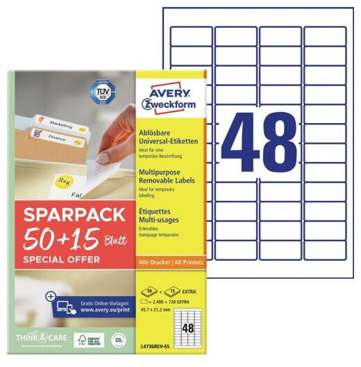 Fehérített papírcímkék megbízható tapadással Tiszta nyomtatási kép elmosódás nélkül Környezetbarát:"Blauer Engel" tanúsítvánnyal, 100% -ban újrahasznosított papírból, Németországban gyártvaTökéletes brosúrák címkézéséhez és címzés címkék készítéséhezMinden szabványos lézer- és tintasugaras nyomtatóhoz. TÜV SÜD által garantált problémamentes nyomt