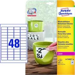 A L4716REV-20 cikkszámú Avery Zweckform öntapadós címke speciális visszaszedhető ragasztójának köszönhetően felragasztás után könnyedén visszaszedhető anélkül, hogy a felületen nyomot hagyna. Sokféle felhasználásra alkalmas, általános matt papír alapanyagú öntapadó etikett címke, visszaszedhető ragasztóval A4-es méretű lapokon. Kültéri hatásoknak nem, vagy csak