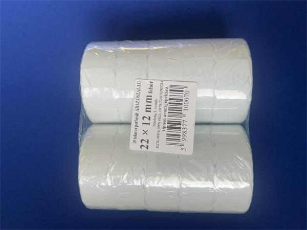 Címkék árazógépekhez -kiszerelés: 10 db/csomag -fehéres színű hordozó -1200 címke/tekercs -kompatibilis gép: Blitz P6, Jolly JP6, Swing 622, Open P6, Meto 622, Printex Z6, Tovel L6 Kiszerelés: 10 tek/csom