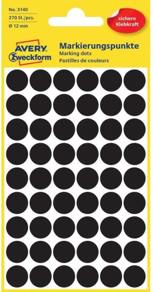 Címke mérete: 12 mm Csomag tartalma: 270 jelölőcímke/csomag Az AVERY ZWECKFORM jelölőpontok tökéletesek jelölésre, rendszerezésre, tervezésre, iratrendezésre. Katalóguskód: 25369