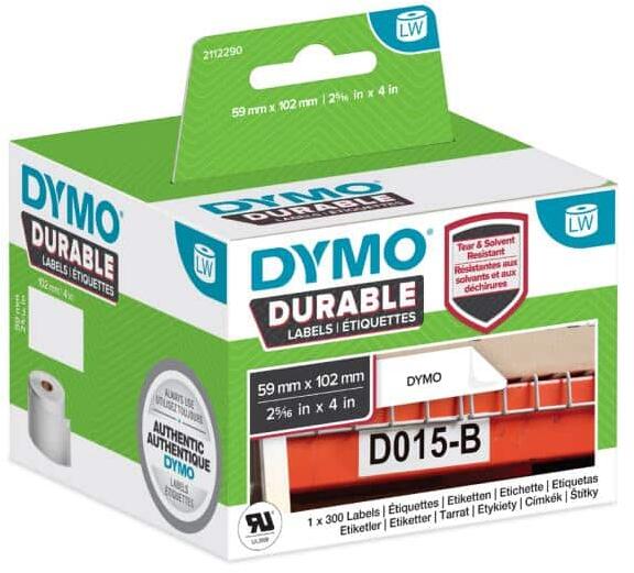 Nehéz felületekhez a legjobb választás egy robusztusabb és ellenállóbb címke, mint a papírcímke. A DYMO LabelWriter nagy teljesítményű címkék ipari ragasztókkal és tartós bevonattal rendelkeznek, amelyek ellenállnak a hő, nedvesség és oldószerek hatásának. A DYMO LW Durable címkék ideálisak polcok , padlójelölés , vegyszertárolás és más felhasználási területek