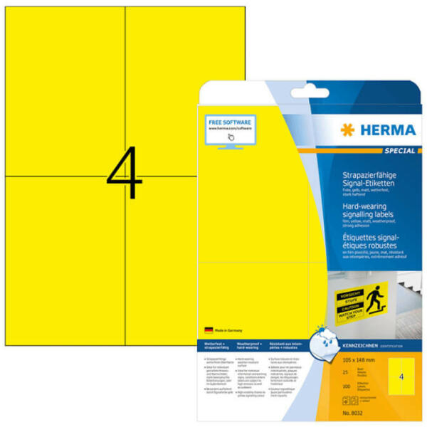 A Herma extra erős tapadást igénylő felhasználásra szánt műanyag (PET) A4-es íves címkéje! Vegyszer-, olaj-, nedvesség, szennyeződés, UV- és hőálló (-20 C° - +80 C°), téphetetlen műnyag (poliészter) öntapadó etikett címke. Kültéri (időjárásálló) és beltéri használatra kifejlesztett, széles hőmérsékleti tartományban használható íves etikett címke. A Herm