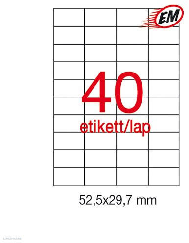 Címke mérete: 99,1 x 139 mm Avery Zweckform 99,1 x 139 mm méretű, fehér színű, matt felületű, időjárásálló, rendkívül ellenálló öntapadós etikett címke, A4-es lapon, erős, tartós ragasztóval, kerekített sarkokkal, valamint garantált elakadásmentes nyomtatással. Rendelési azonosító: Avery Zweckform L7915-40 . Nyomtatható: fekete-fehér és színes lézernyomtatókban
