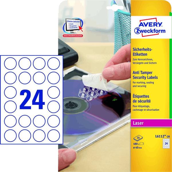 Az Avery Zweckform címke speciális biztonsági (VOID/STOP) ragasztójának legfőbb jellemzője, hogy felragasztás után nem távolítható el vagy nem helyezhető át nyom nélkül, csökkentve a visszaélés esélyét. Az eltávolítási kísérletre a címke fehér színű STOP feliratot hagy maga után. A ragasztó maximális hatását felragasztás után 24 órával fejti ki. Nedvesség-,