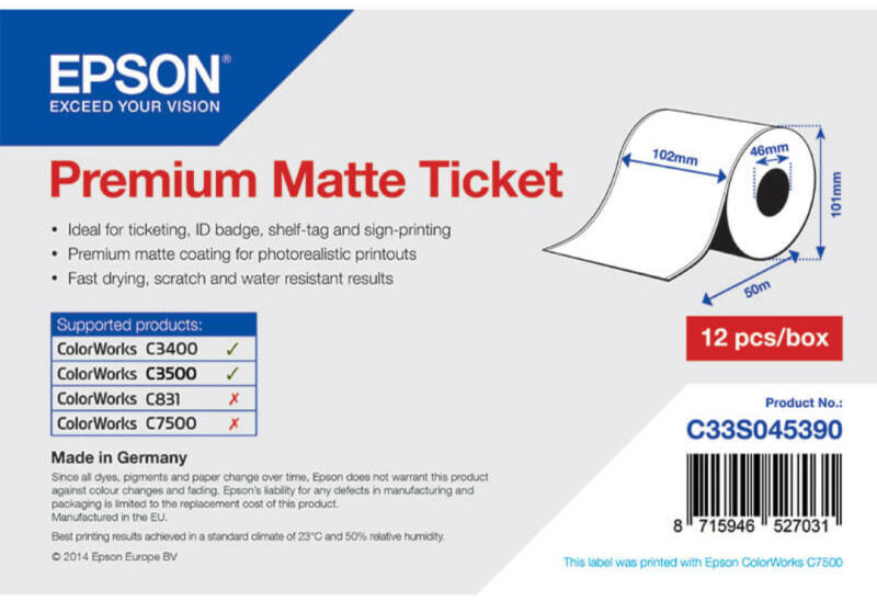 Prémium matt bevonatú, simított folyamatos papír szalag használata esetén a felhasználó választhatja meg, hogy milyen szélességű (51, 76, 102 mm) öntapadós alapanyagra van szüksége. Az InkJet (tintasugaras) NEM öntapadó szalag alkalmas beltéri és kültéri felhasználásra -20 és 80 C°-os hőmérsékleti tartományban (felragasztási min. hőmérséklet 5 C°). A prémium mat