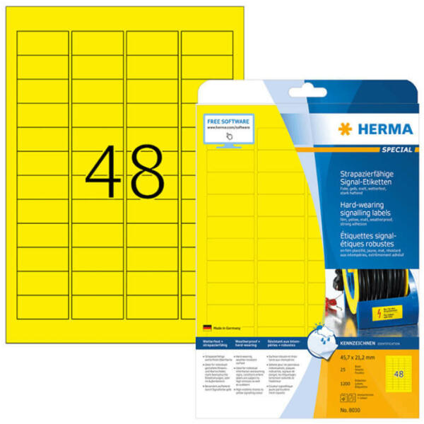 A Herma extra erős tapadást igénylő felhasználásra szánt műanyag (PET) A4-es íves címkéje! Vegyszer-, olaj-, nedvesség, szennyeződés, UV- és hőálló (-20 C° - +80 C°), téphetetlen műanyag (poliészter) öntapadó etikett címke. Kültéri (időjárásálló) és beltéri használatra kifejlesztett, széles hőmérsékleti tartományban használható íves etikett címke. A Her